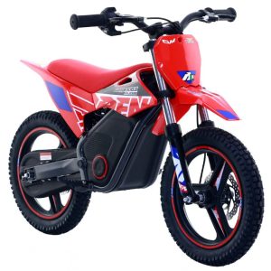La sicurezza è una priorità, con freni a disco anteriori e posteriori per una frenata efficace e controllata. I pneumatici da 14 pollici, sia anteriori che posteriori, assicurano una buona aderenza su diversi tipi di terreno, mentre l’altezza della sella di 49 cm è ideale per bambini, offrendo comfort durante la guida. Con un peso di soli 21 kg, la Warrior SX-E350 è leggera e maneggevole, perfetta per i giovani piloti che desiderano iniziare a esplorare il mondo delle bici elettriche.